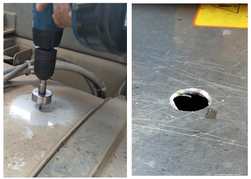 钻孔的位置的选择,在油箱的中心位置,钻孔,开孔器的规格可采用φ21mm—φ28mm都可以。