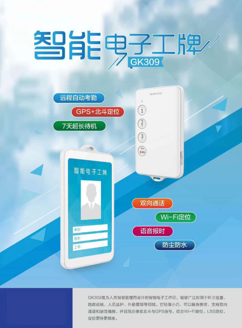 工卡定位器GK309是为人员智慧管理而设计的智能电子工作证,能够广泛应用于环卫巡查、路政巡检、人员监护、外勤管理等领域。它轻薄小巧,可以随身携带,支持双向通话和语音播报,并且同步接收北斗与GPS信号,结合Wi-Fi定位、LBS定位,定位更快更准。